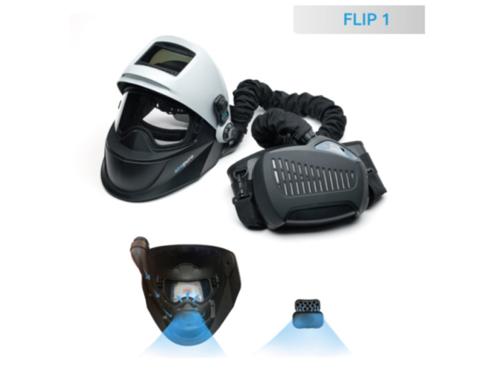 Kupte si za super cenu 9.900 Kč samozatmavovací svářečská kukla s filtračně ventilační jednotkou airepuro FLIP 1 FVR