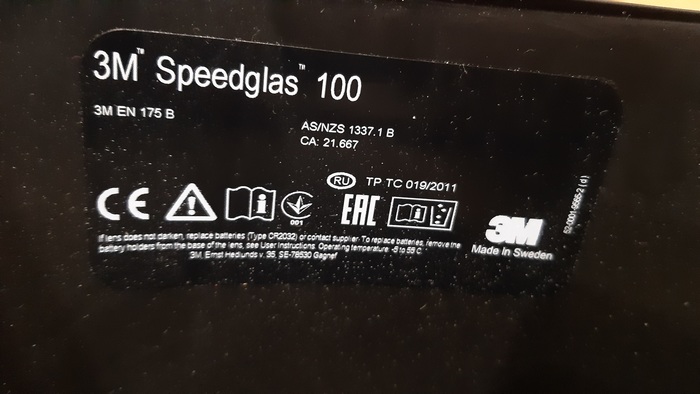 Svařovací kuklu 3M Speedglass Welding Helmet 100 je možné použít s jednorázovými respirátory nebo ochrannými brýlemi. K napájení v kukle je použito baterií 2 × CR2032.